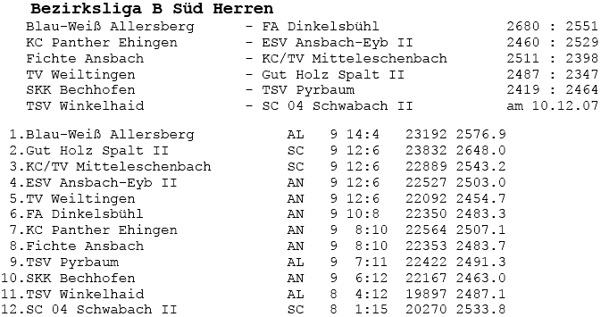 | 11 | Sa | 15.12.2007 | 17:00 | FA Dinkelsbühl I | A | Tabelle / Schnitt |