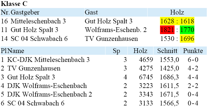 | 7 | spielfrei | Tabelle / Schnitt |