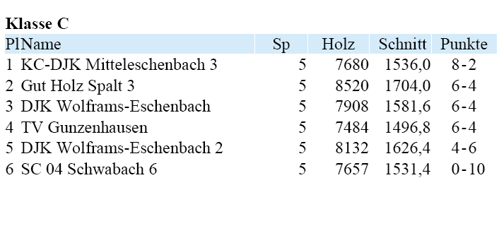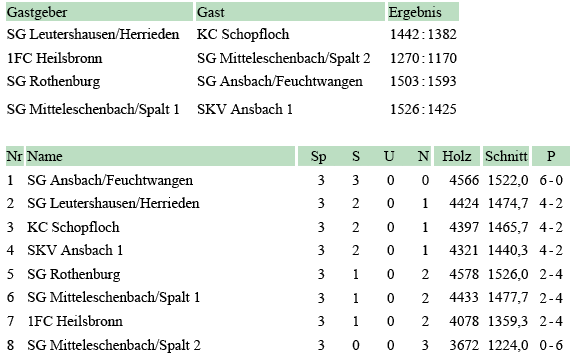 | 5 | spielfrei | Tabelle / Schnitt | ||||