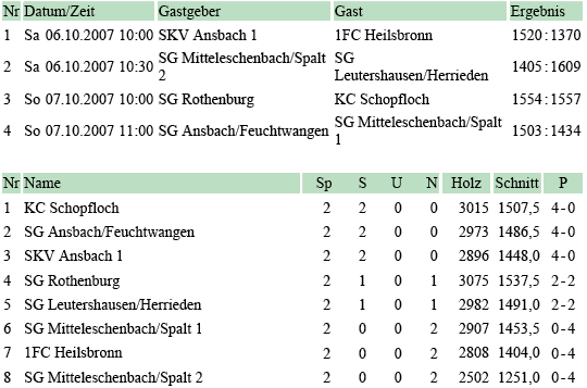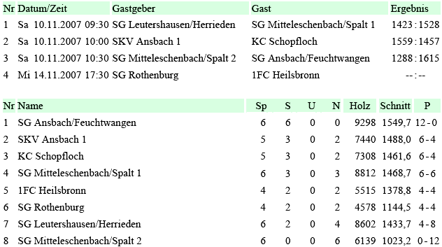 | 6 | Sa | 10.11.2007 | SG Ansbach/Feuchtwangen | H | Tabelle | |