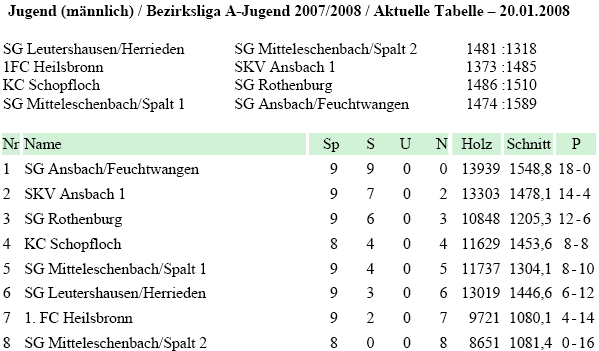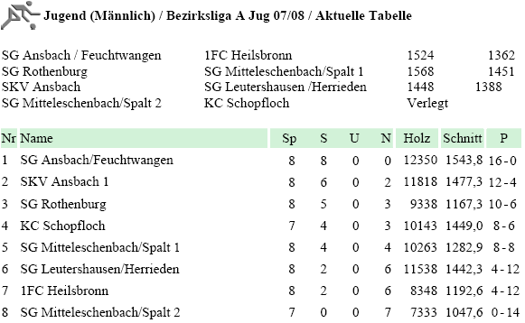 | 14 | So | 30.03.2008 | SKV Ansbach I | H | Tabelle |